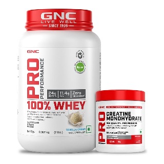 GNC Pro Performance 100% Whey Protein, 2 lb Vanilla Cream with Creatine Monohydrate 0.22 lb Combo GNC