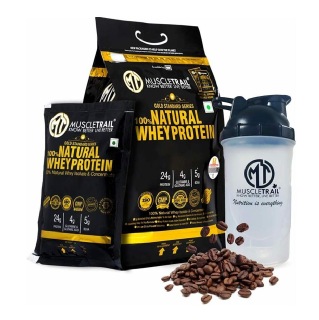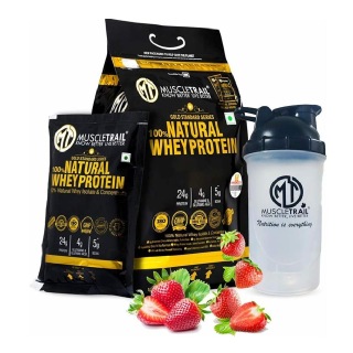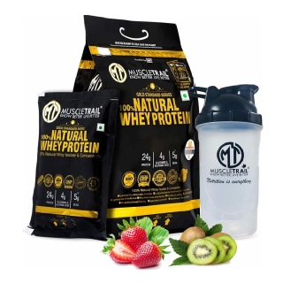 Muscle Trail Gold Standard Series 100% Natural Whey Protein, 60 sachets/pack Kesar Kaju Pista (with Free Shaker Inside) Muscle Trail