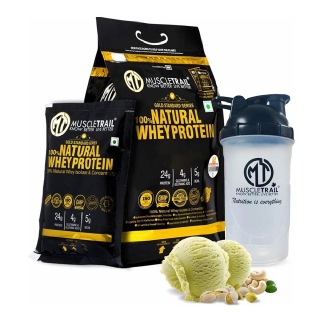 Muscle Trail Gold Standard Series 100% Natural Whey Protein, 60 sachets/pack Kulfi Pista (with Free Shaker Inside) Muscle Trail